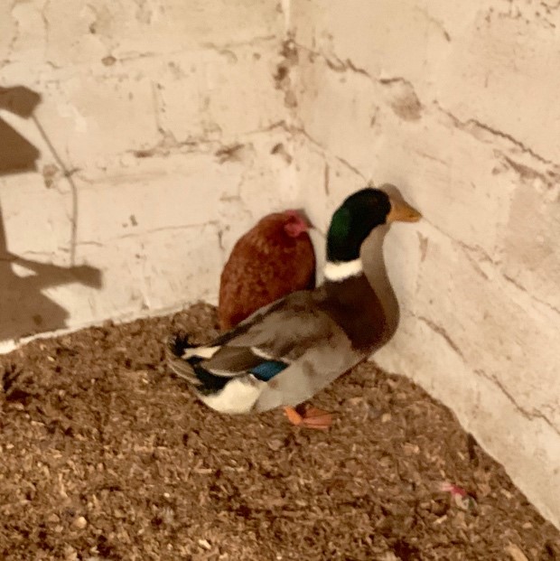 About 30 minutes ago I had to kill a chicken. “How can you do that?” I’ve heard from people, as I’ve had to do it several times before. “Well, I hold her tenderly, thank her for all the delicious eggs she gave us, then I break her neck.” It’s never easy. This time it was especially hard because this was Rosie, the only chicken I called by name. She was the only one I could distinguish from the others. She was dark red, and had a cool light beige stripe on her left wing. When we bought our house two years ago, it came with 22 hens, a guinea fowl, and a widowed Mallard duck I named Trump. Donald Duck Trump who messes with the ladies J In truth, he was the rooster we didn’t have, caring for his brood.
